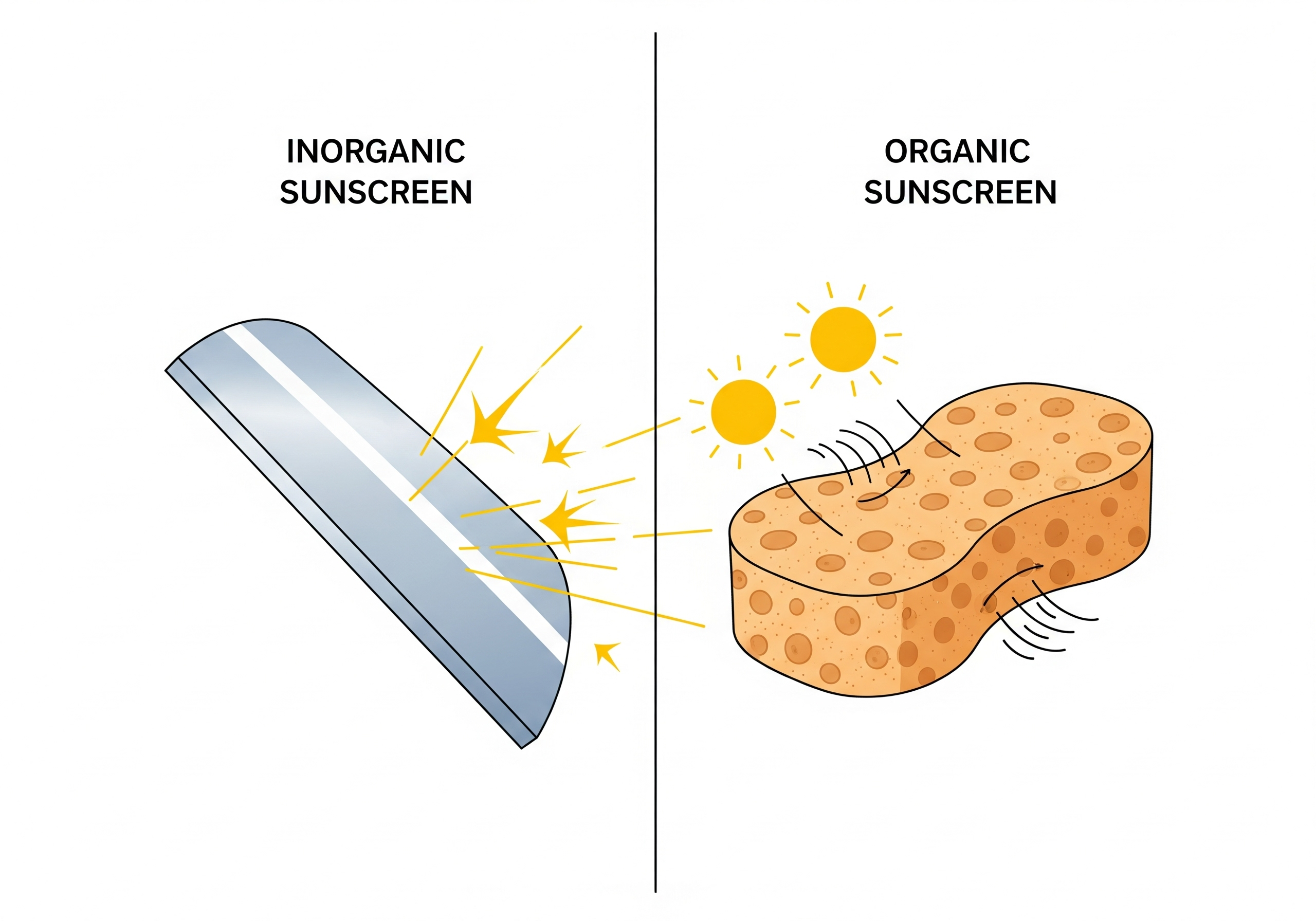 선크림은 크게 두 가지 방식으로 자외선을 차단합니다. 바로 무기자차와 유기자차입니다. 이 둘의 차이점을 정확히 이해하는 것이 내 피부 타입과 상황에 맞는 제품을 고르는 첫걸음입니다. 밑에 두 선크림의 차이점과 장단점을 정리하겠습니다.